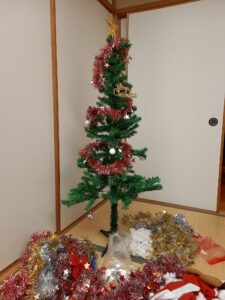クリスマス会ではいつものつどいとは違い、ケーキのデコレーションやツリーの飾り付けなどの準備をしています。