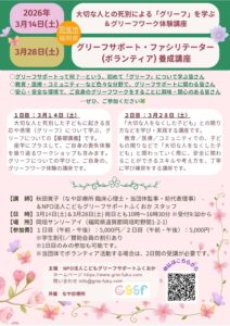 ☆3/14(土)&3/28(土)グリーフサポートを学ぶ講座&ボランティア養成講座